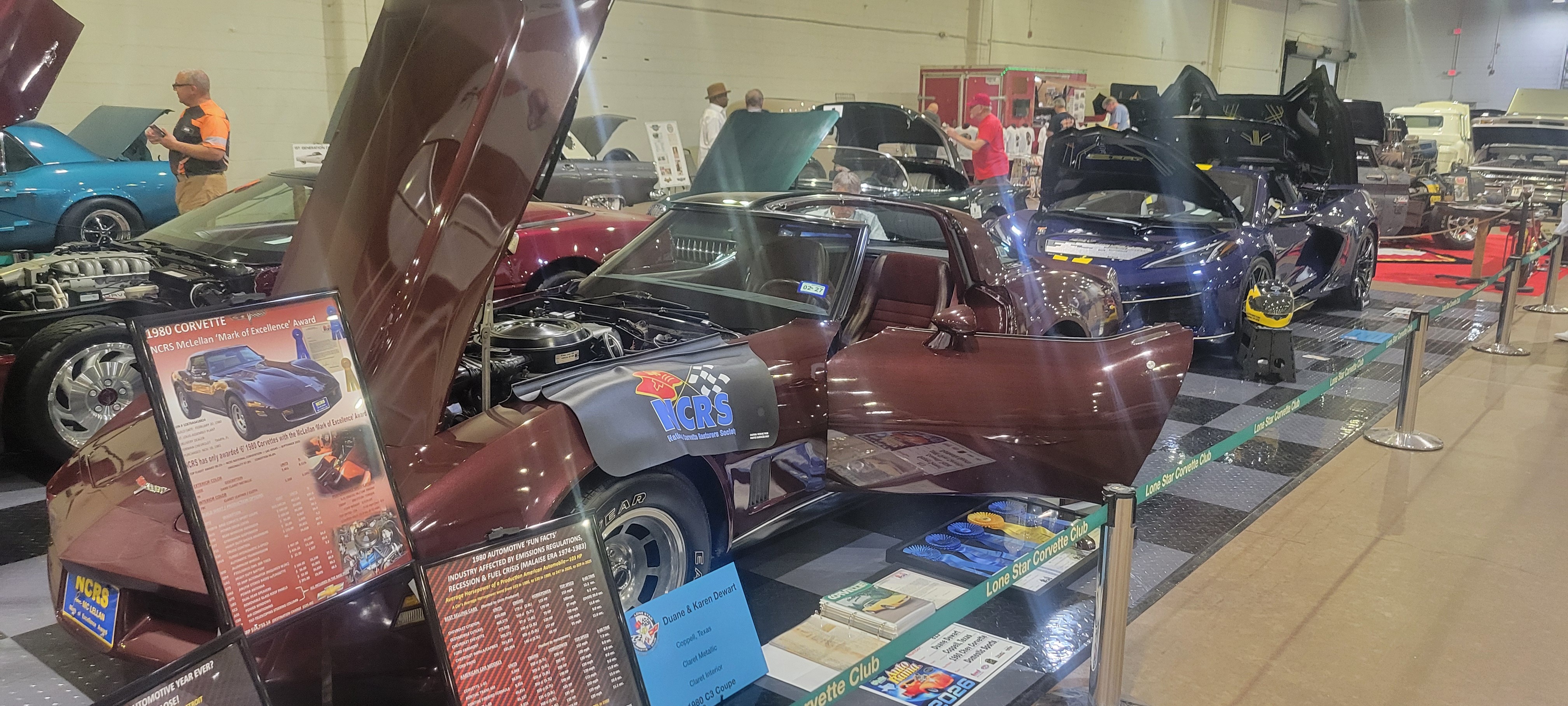 2023 Autorama February 17th-19th Here are the members that displayed their corvettes and the award they won Gary Swan - C1 Semi Sport - 2nd Place Gary Swan - C2 Full Sport - 3rd Place Kirk and Cindy Dale - C3 Domestic Sport - 2nd Place Craig and Laura Satterfield - C4 Domestic Sport - 1st Place Chris Parker - C5 Domestic Sport - 3rd Place Brad Guthrie - C6 Domestic Sports - 1st Place Bill and Monica Bignall - C7 Domestic Sport - Class Award Joe Steele - C8 Conservative Sport 97-20 - 1st Place Lone Star Corvette Club won 2nd place for Club Display Pictures